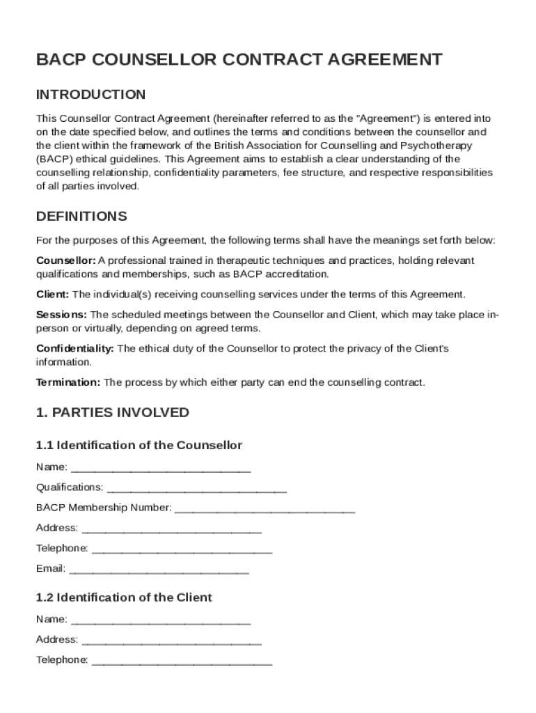 A BACP counsellor contract is a legally binding agreement between a counsellor and a client that outlines the terms of the therapeutic relationship. Its importance lies in establishing clarity and expectations, fostering a safe environment for both parties. The BACP ethical guidelines govern these contracts, ensuring standards that promote professionalism and ethical conduct.