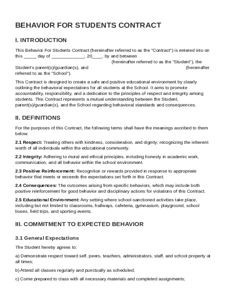 A Behavior For Students Contract Template is essential for establishing clear expectations in educational settings. This guide provides an overview of the contract's structure and purpose, helping educators and administrators foster a positive learning environment.