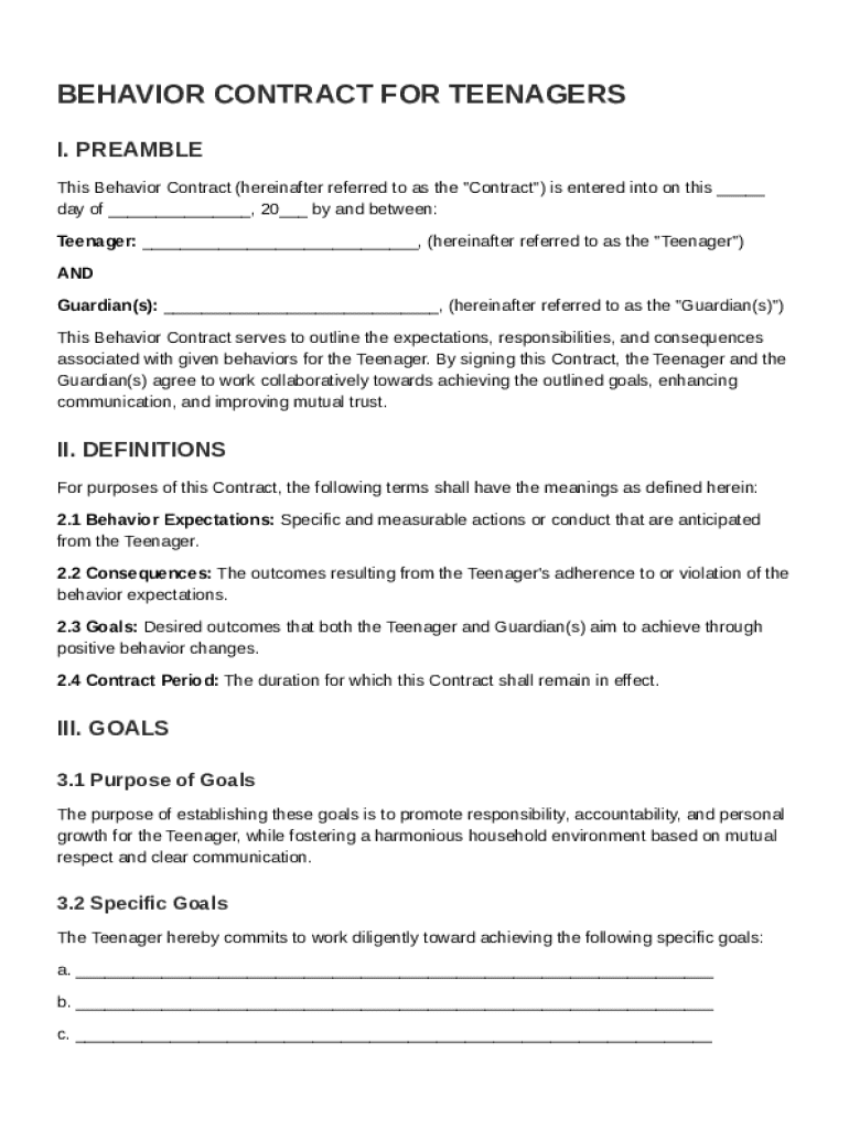 A Behavior For Teenager Contract Template is a formal agreement outlining expected behaviors and consequences for teenagers and their guardians.