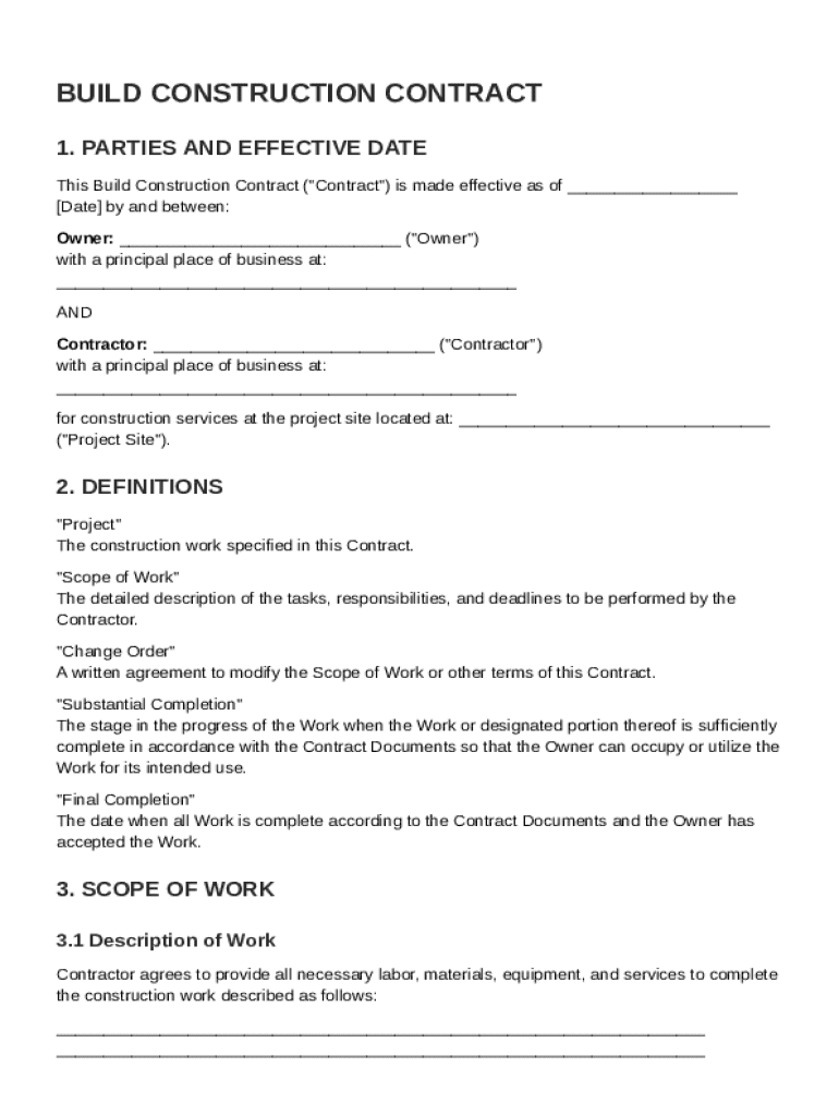 What is Build Construction Contract Template