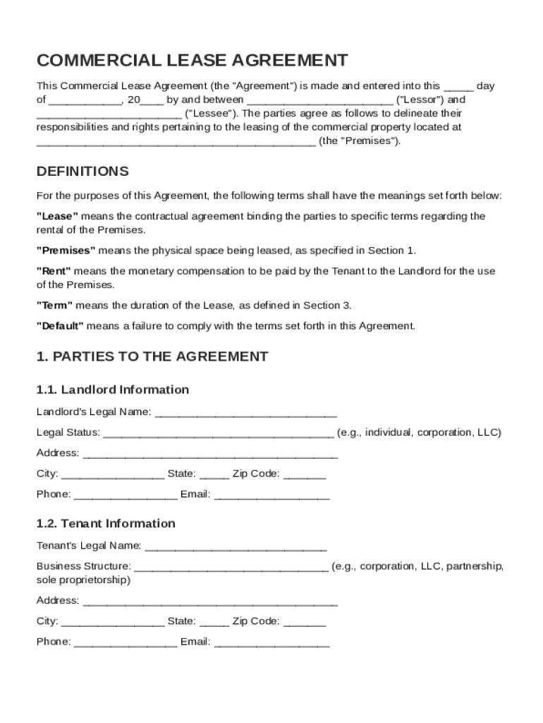 This document outlines the terms and conditions of a commercial lease agreement between a lessor and a lessee.