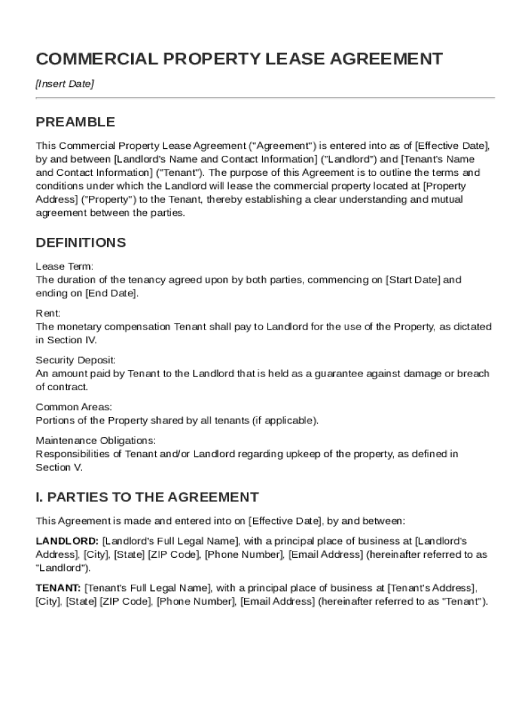 A Commercial Property Lease Agreement serves as a binding legal document between a landlord and a tenant, outlining the terms and conditions for renting commercial space. It is essential for defining roles, responsibilities, and expectations for both parties.