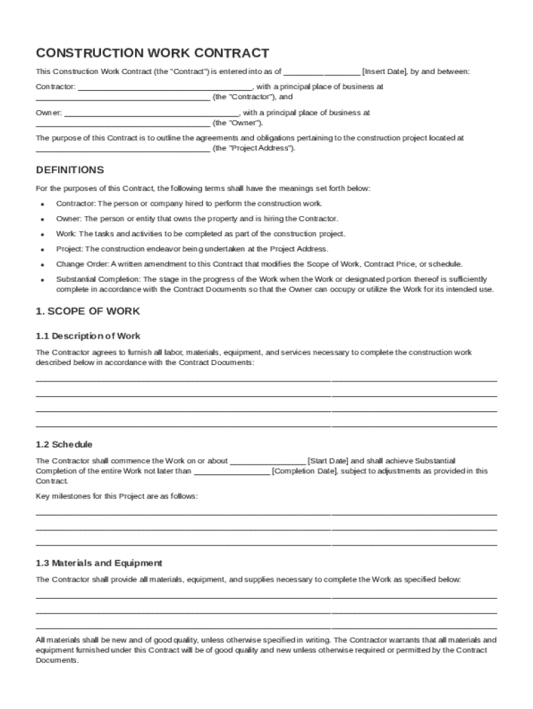 Construction Work Contract Template - pdfFiller