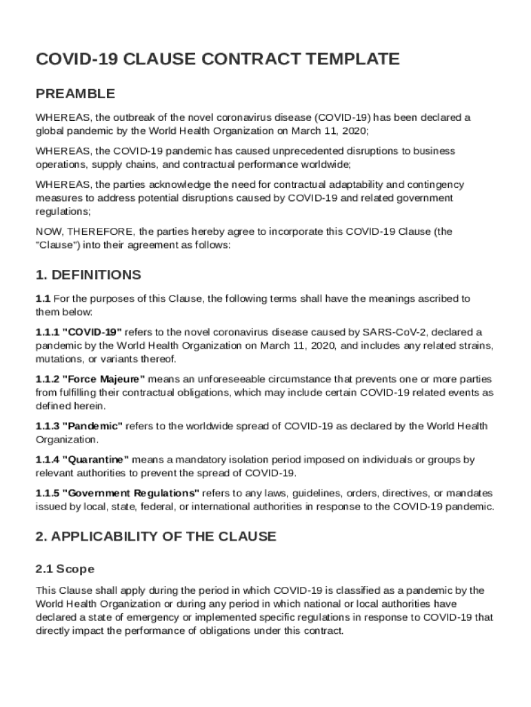 What is Covid 19 Clause Contract Template