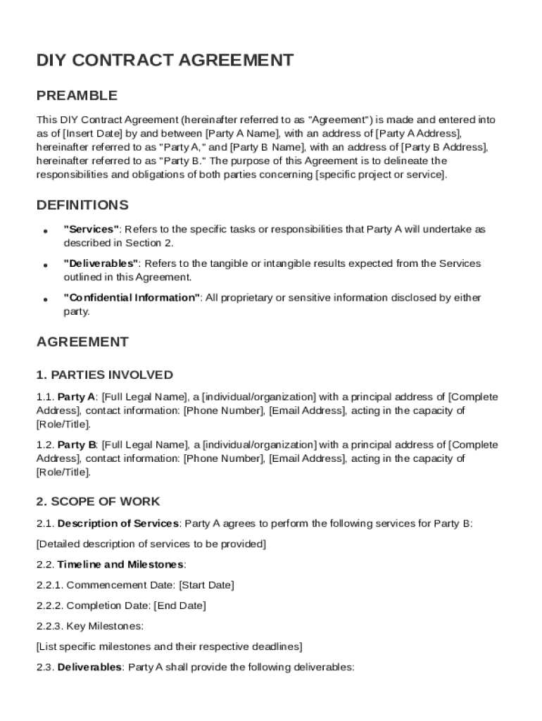 Creating a DIY Contract Template form is essential for any project, big or small. This guide will provide you with step-by-step instructions and useful tips to help you fill out your contract correctly, ensuring that all parties are clear on the terms and conditions.
