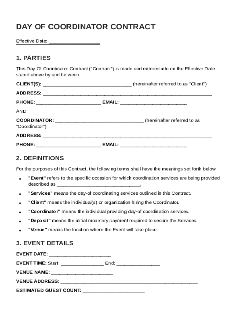 What is Day Of Coordinator Contract Template