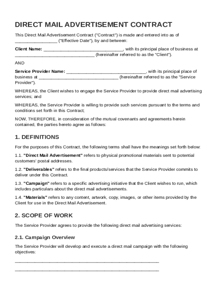 Comprehensive Guide to Direct Mail Advertis Contract Template