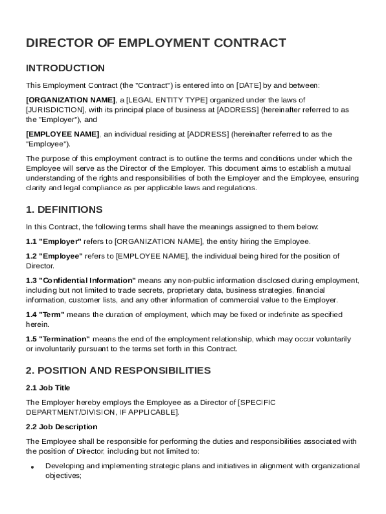 Director Of Employment Contract Template Guide