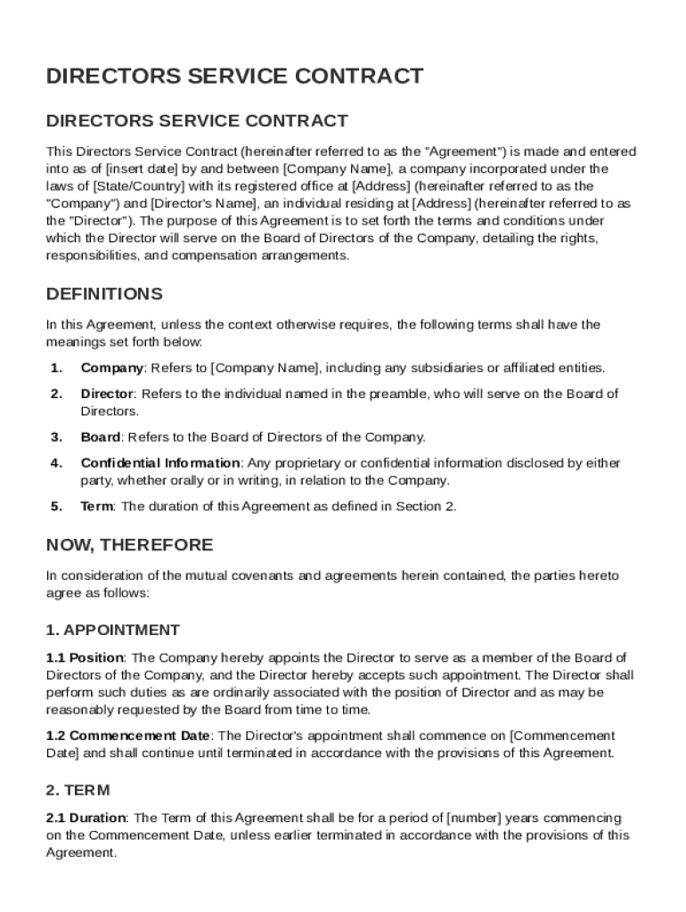 What is Directors Service Contract Template