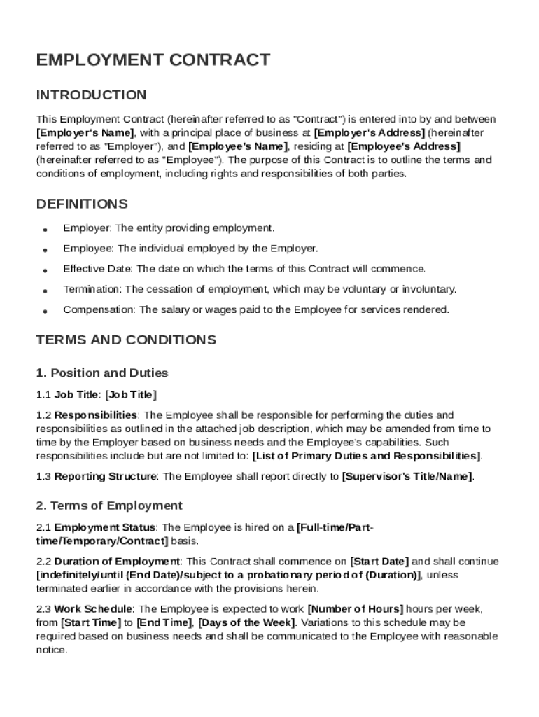 An employment contract is a formal agreement between an employer and an employee detailing the terms of employment. It's crucial for establishing the legal framework of employment relationships, safeguarding rights, and outlining responsibilities. Misunderstandings about these documents can lead to disputes; hence learning about them is essential.