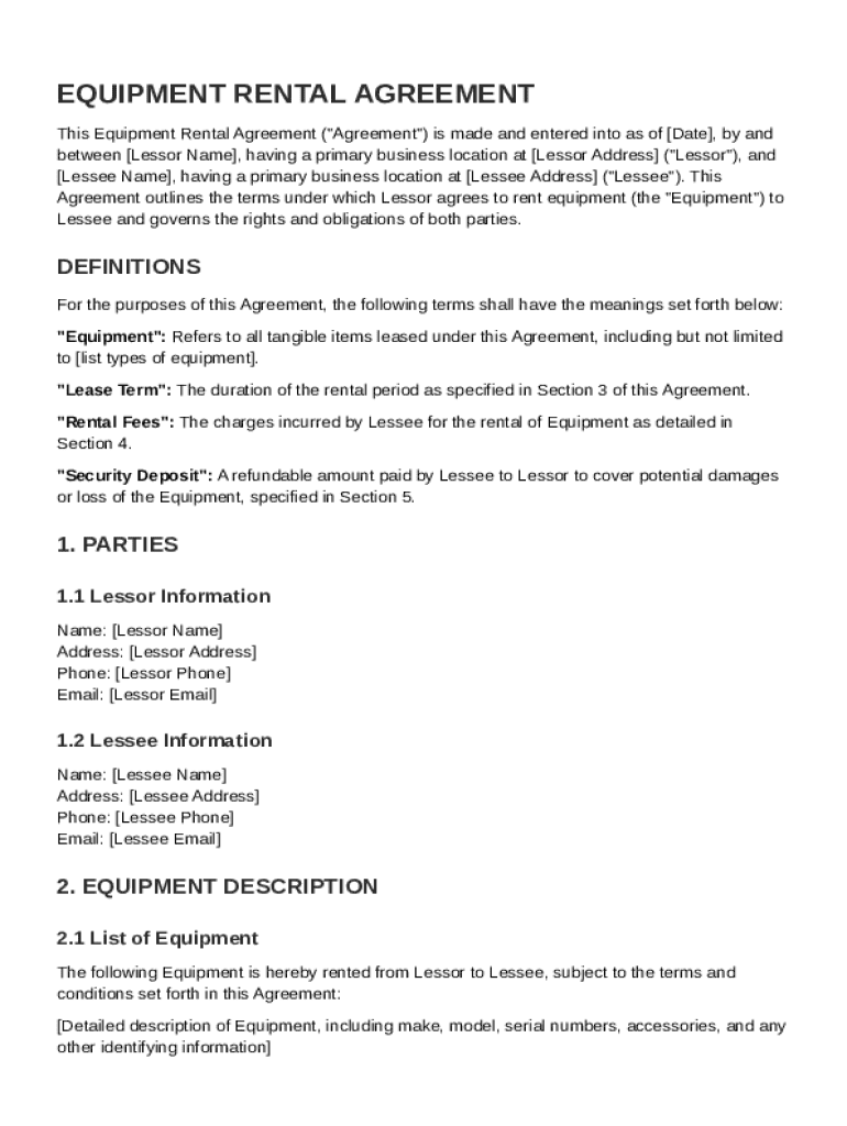 Comprehensive Guide to Equipment Rental Contract Template on pdfFiller