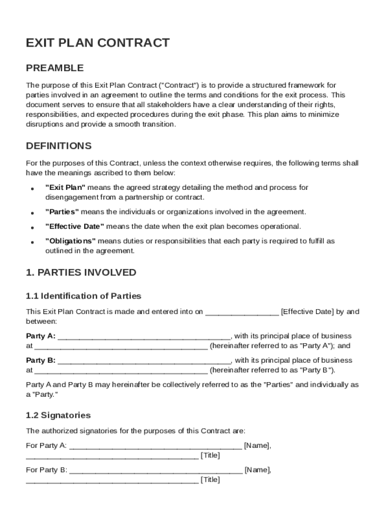 Exit Plan Contract Template Guide on pdfFiller