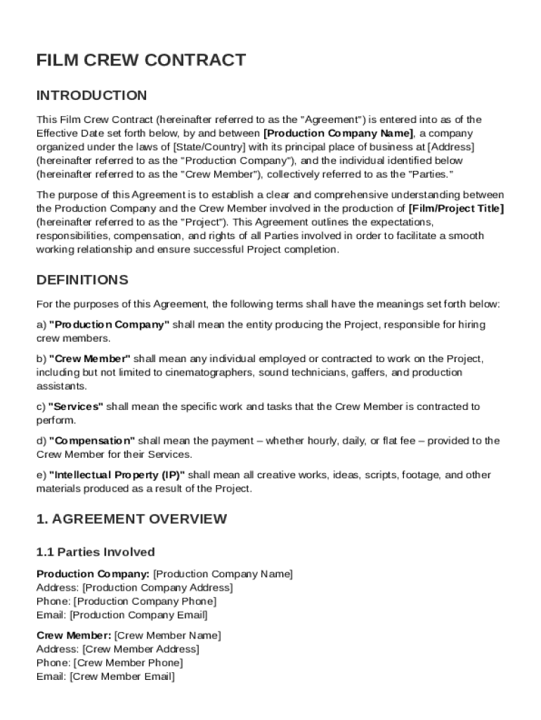 Film Crew Contract Template - Comprehensive Guide