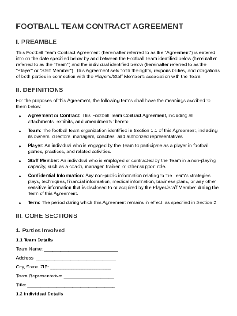 Football Team Contract Template Overview