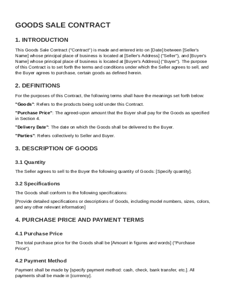 A Goods Sale Contract Template is a legal document that outlines the terms and conditions for the sale of goods between a seller and a buyer.