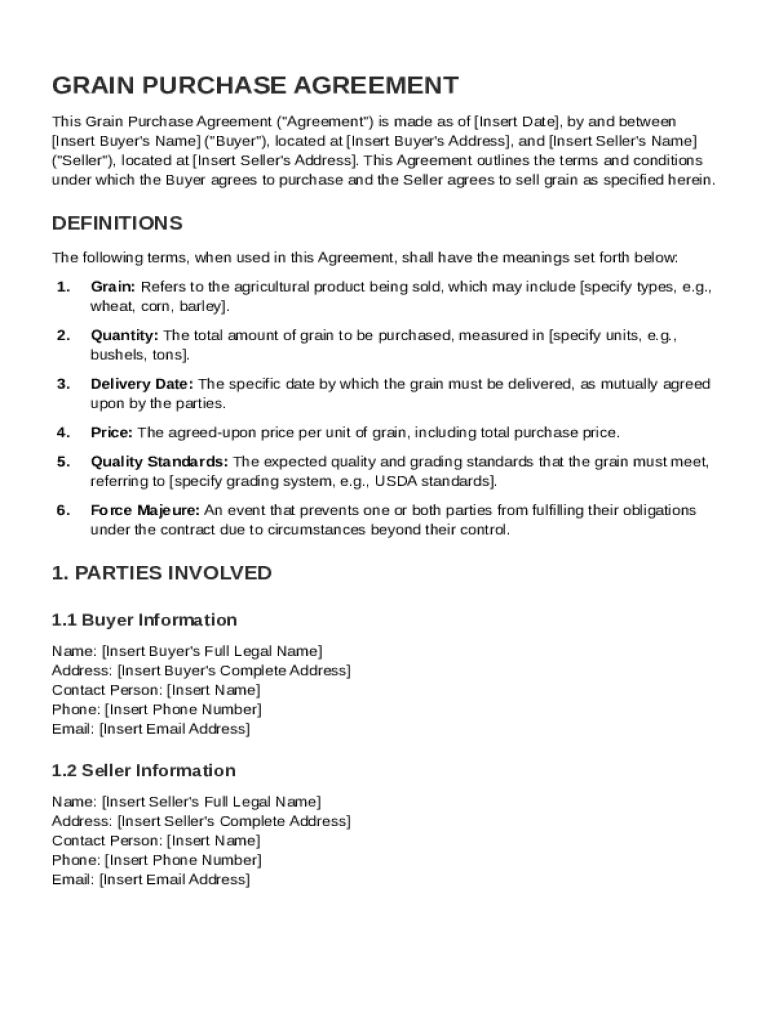 A Grain Contract Template is a formal agreement outlining the terms and conditions for the sale and purchase of grain between parties.