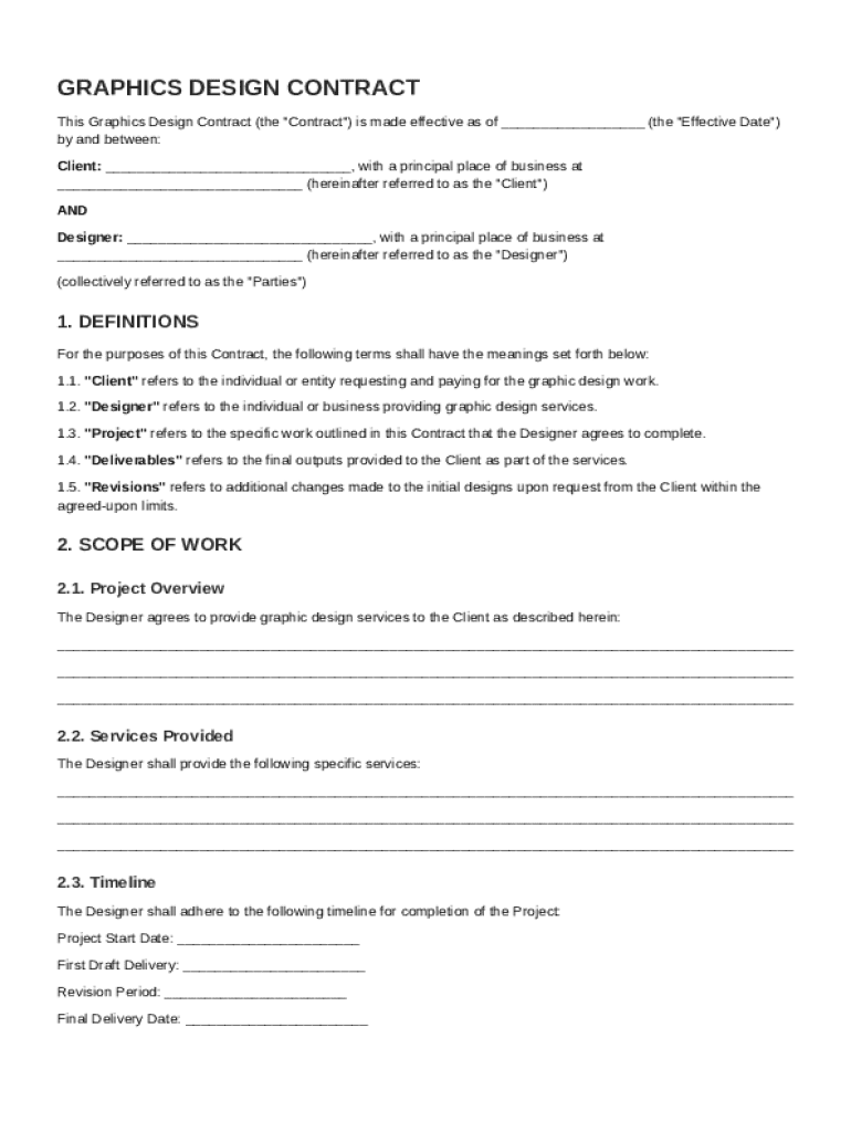 A graphics design contract is a legally binding document that outlines the terms and conditions between a designer and their client. It serves to protect both parties by detailing the scope of work, payment terms, and timelines. Understanding the importance of having a well-drafted contract is essential for smooth collaboration and to avoid disputes in the future.