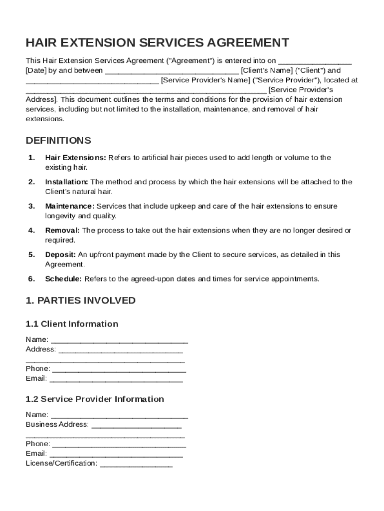 Hair extensions are not just a fashion statement; they serve as transformative tools in the beauty industry. They are used to add length, volume, and even color to natural hair, helping individuals achieve their desired look. Commonly offered services include installation, maintenance, and removal of these extensions. Establishing a hair extension contract is pivotal to protect both the service provider and clients involved.