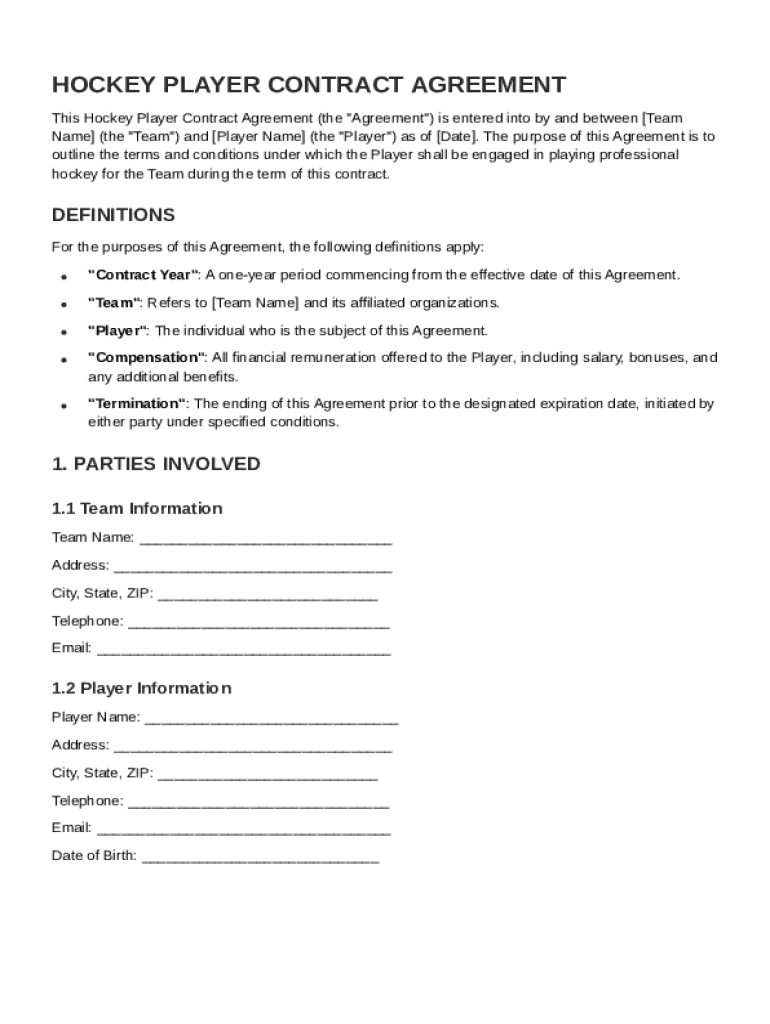 The Hockey Player Contract Template form is essential for players and teams navigating professional hockey agreements. This comprehensive guide will walk you through each aspect of the contract template, ensuring that you understand its significance and how to effectively use pdfFiller for document management.