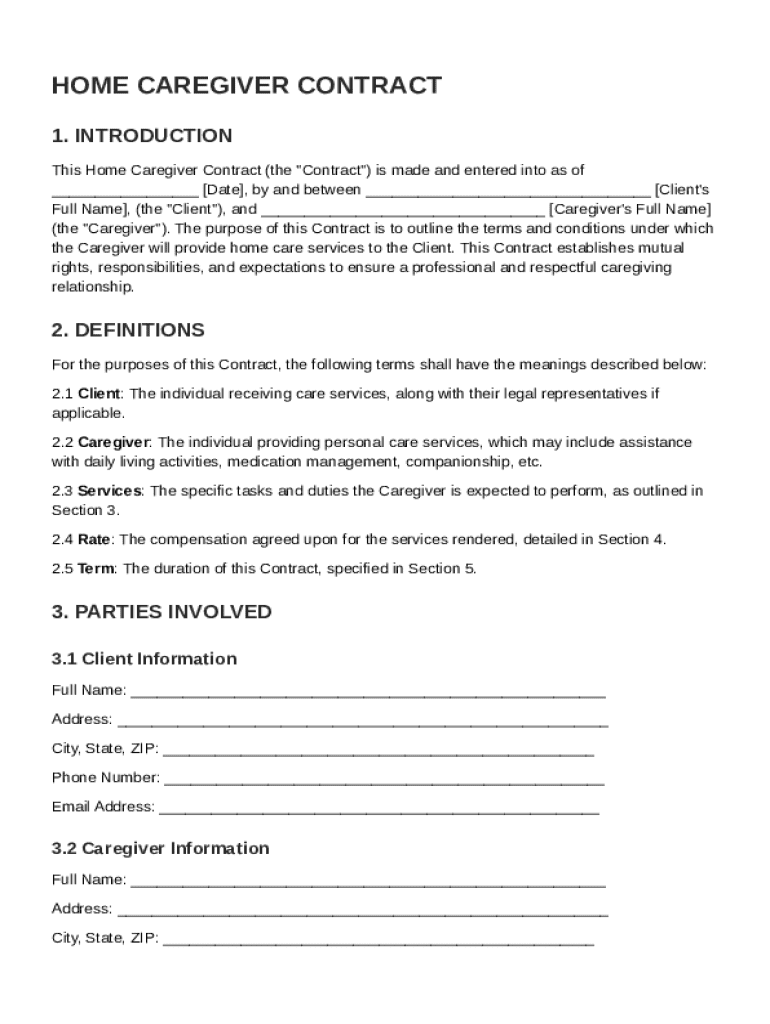 This guide provides a comprehensive overview of how to fill out a Home Caregiver Contract Template form, ensuring that both the client and caregiver clearly understand their rights and responsibilities.
