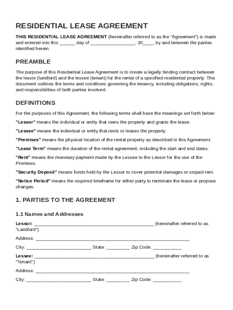 A residential lease agreement must contain certain essential components to be enforceable and useful for both parties. These components ensure that both the landlord and tenant understand their roles and obligations.