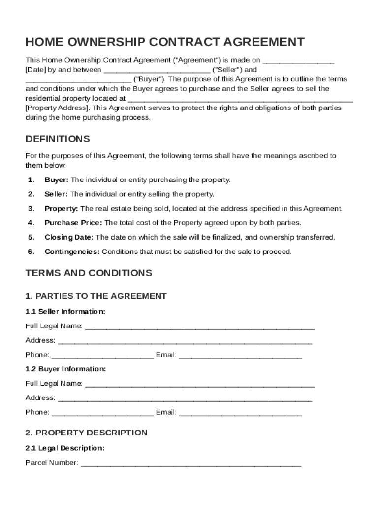 This section provides essential information about the Home Ownership Contract Template, its purpose, and critical components.