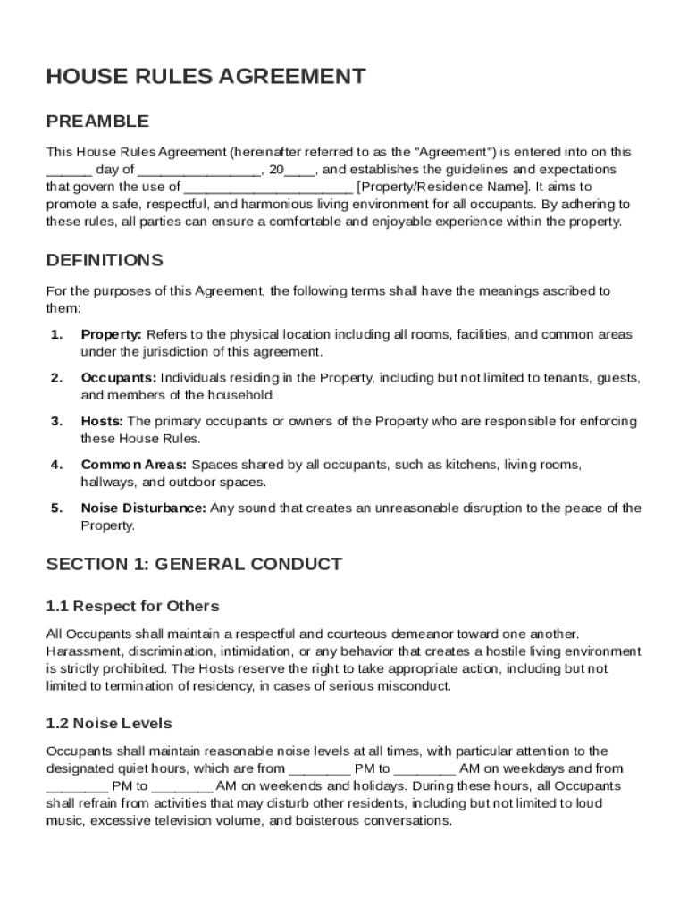 A House Rules Agreement serves as a foundational document that outlines the rules and guidelines for all occupants living in a shared space.