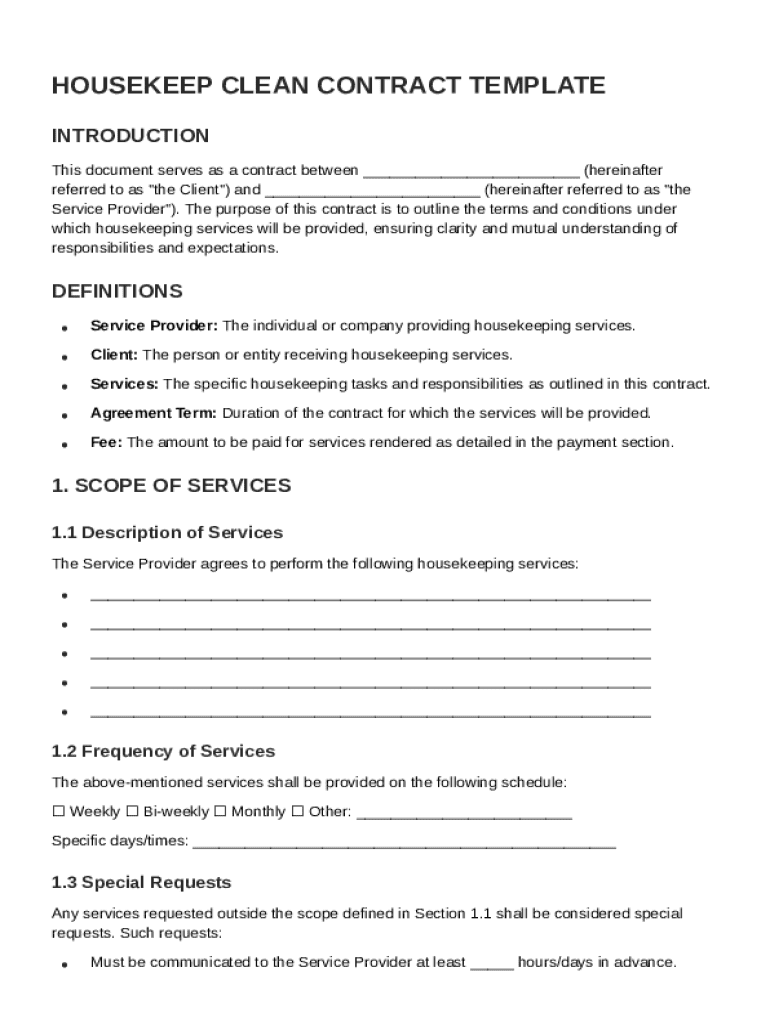 Comprehensive Guide to Housekeep Clean Contract Template on pdfFiller
