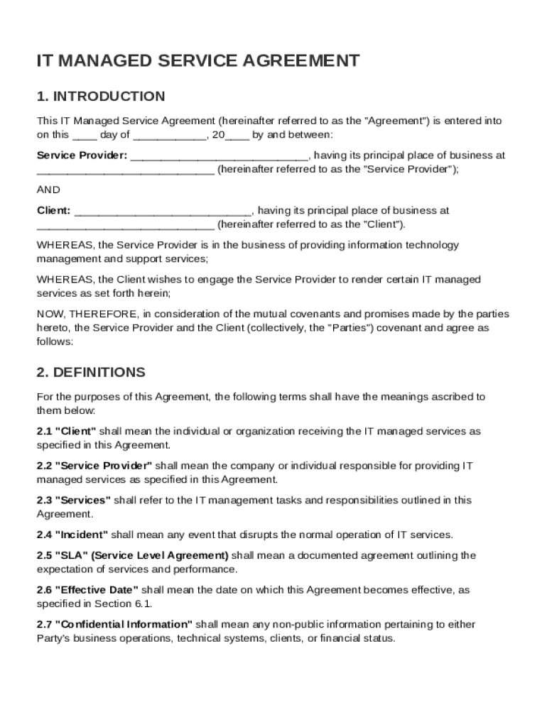 An IT Managed Service Contract Template is a standardized document outlining the terms and conditions for IT service management between a service provider and a client.