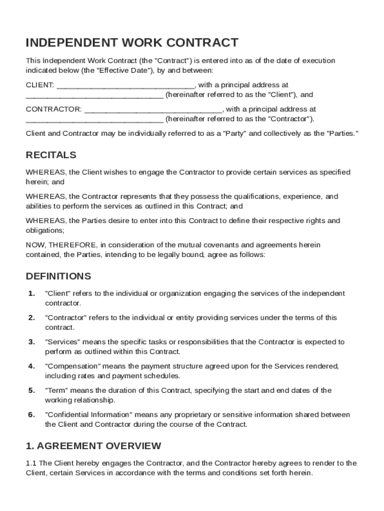 Independent Work Contract Template Overview