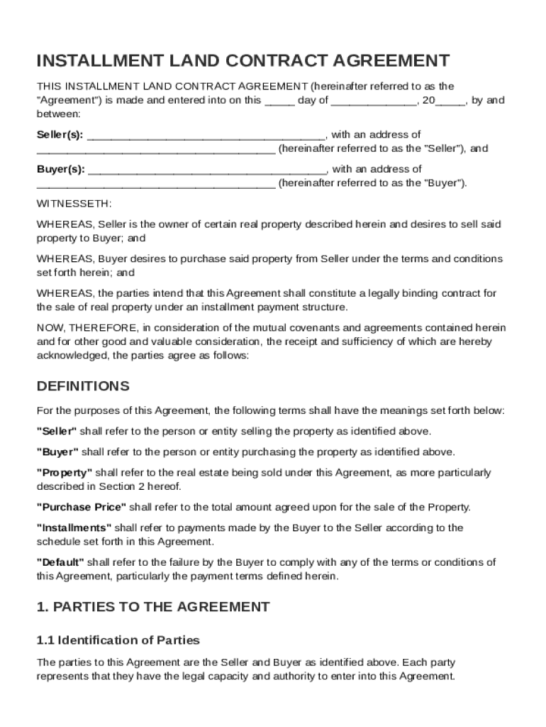 An installment land contract is a legal agreement where the seller finances the purchase of property through a series of payments made by the buyer. This agreement ensures that both parties clearly understand their obligations and rights.