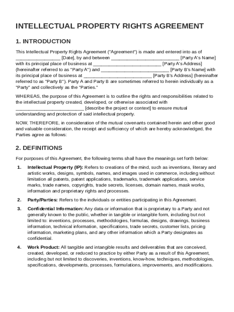 A comprehensive intellectual property rights agreement includes several key components. First, it clearly specifies the parties involved, ensuring accurate identification. Legal definitions and terms are laid out to prevent ambiguity, along with a detailed scope that indicates which intellectual properties are protected under the agreement.