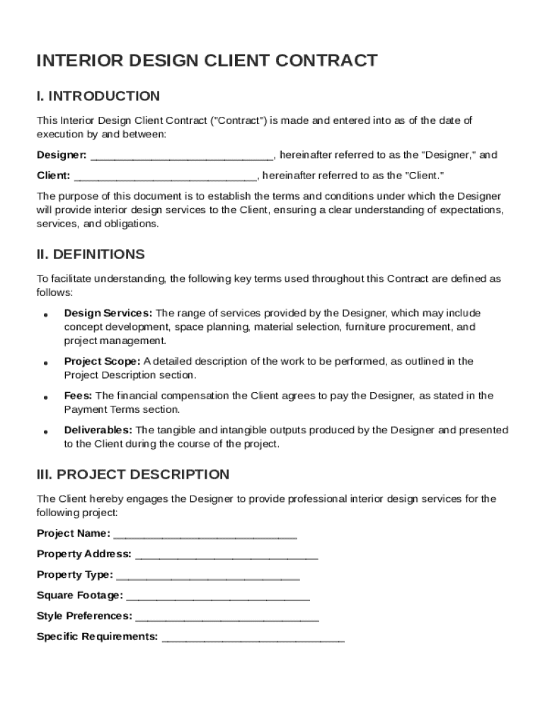 To understand and effectively utilize an Interior Design Client Contract, it's vital to analyze each section in detail.