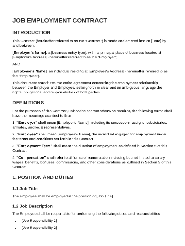 A Job Employment Contract Template is a formal document outlining the terms and conditions of employment between an employer and an employee.