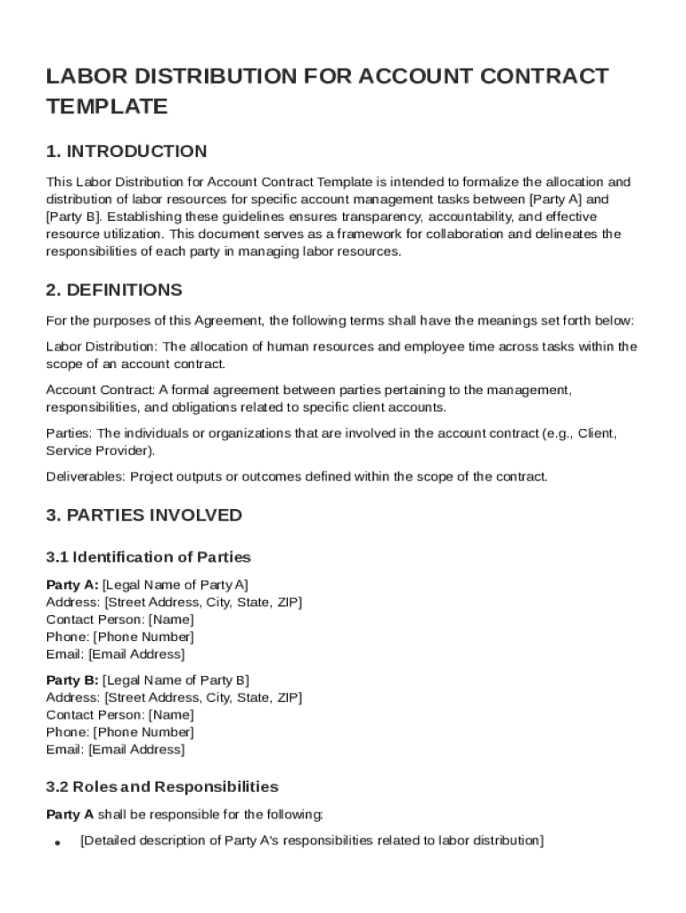 Labor Distribution For Account Contract Template is a document that outlines how labor costs will be allocated across different accounts within a contract.
