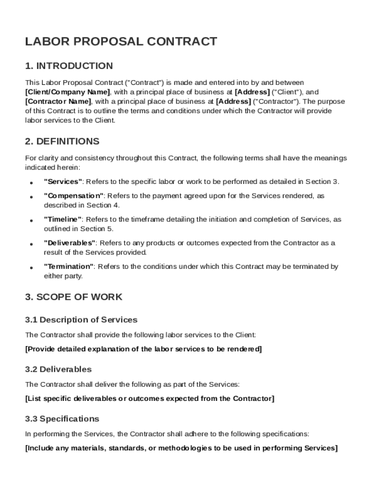 A Labor Proposal Contract Template is a legal document that outlines the terms and conditions for labor work to be performed between parties.