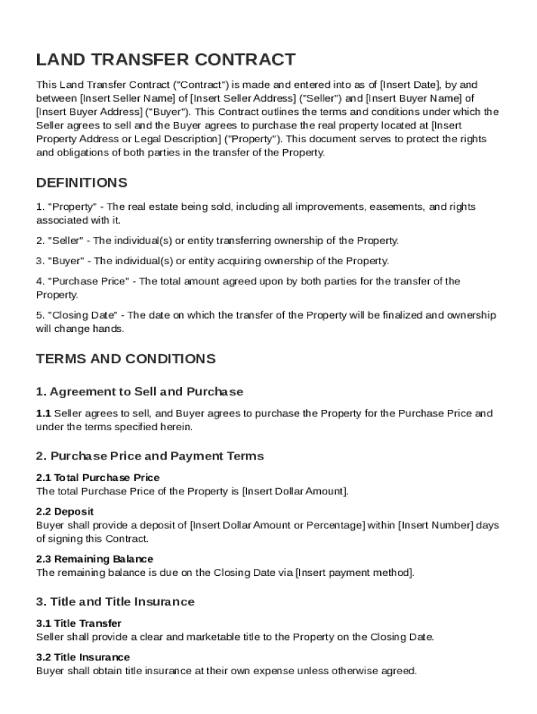 Definition and key provisions of a Land Transfer Contract Template