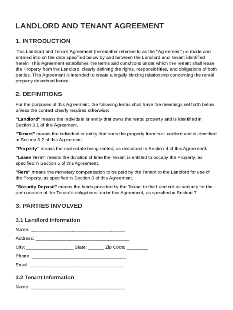 The agreement must clearly identify the landlord and tenant, including names and addresses.