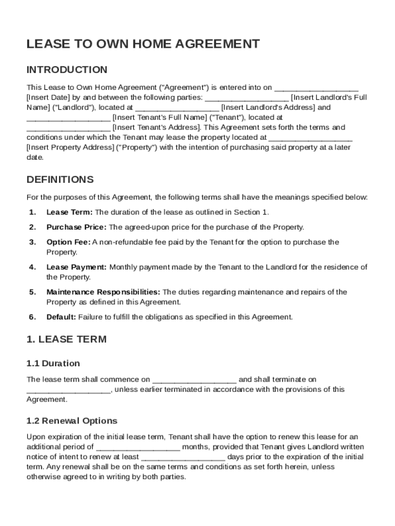 Filling out your lease to own home contract can be straightforward, especially with a structured template. Each section of the contract plays a critical role in ensuring that all terms are clearly defined and understood.