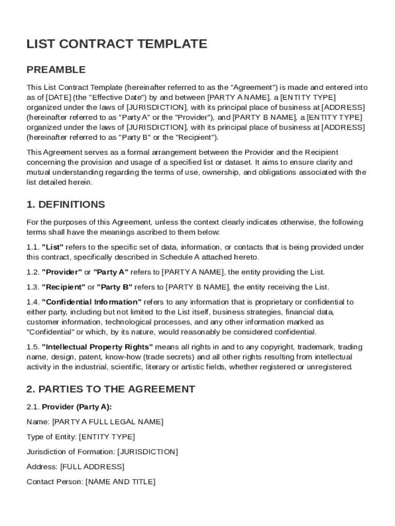 Understanding the definitions and key provisions included in a List Contract Template is crucial for effective usage. Common elements include: