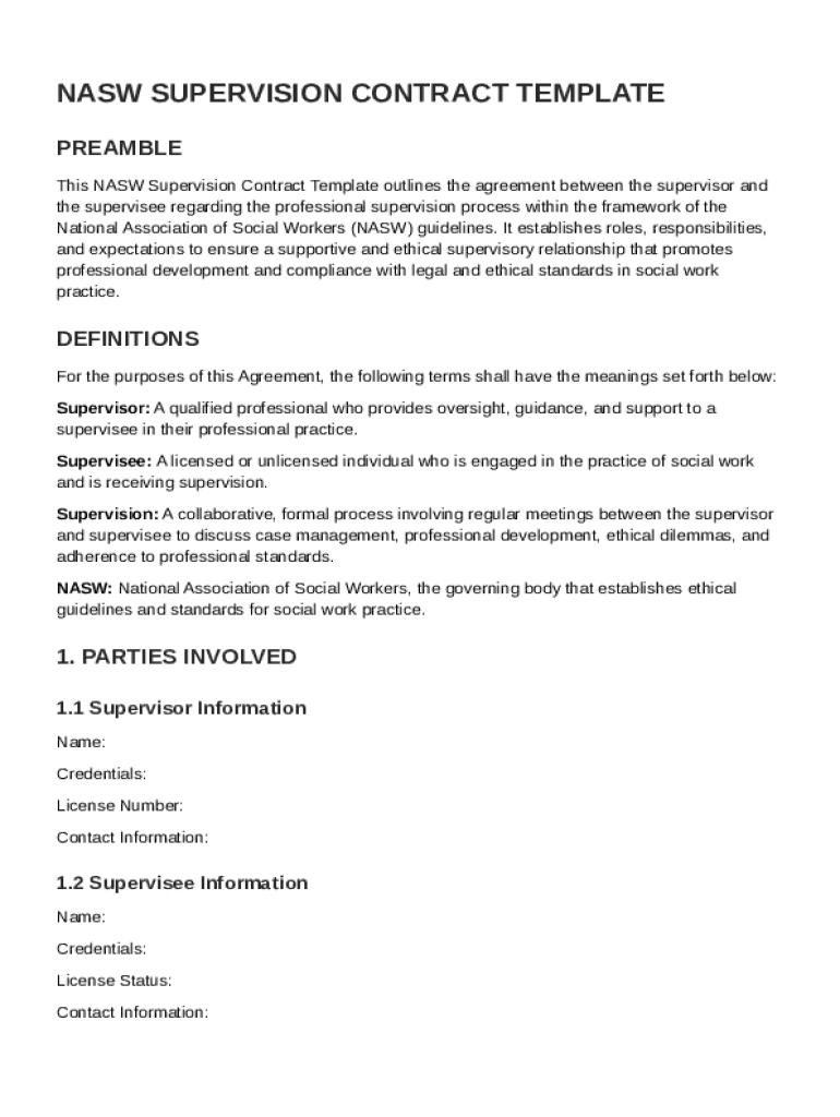 Understand the critical aspects and purpose of the Nasw Supervision Contract Template to ensure proper utilization and compliance.