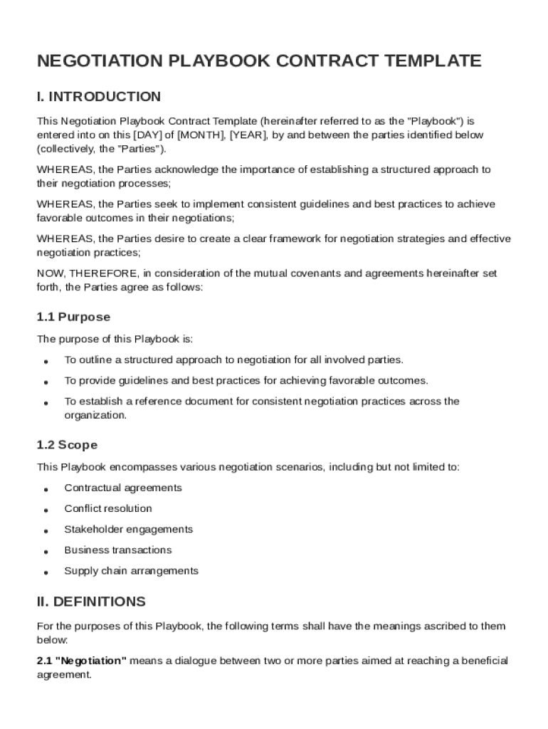 A Negotiation Playbook Contract Template is a structured document that provides guidelines and strategies for conducting negotiations effectively.