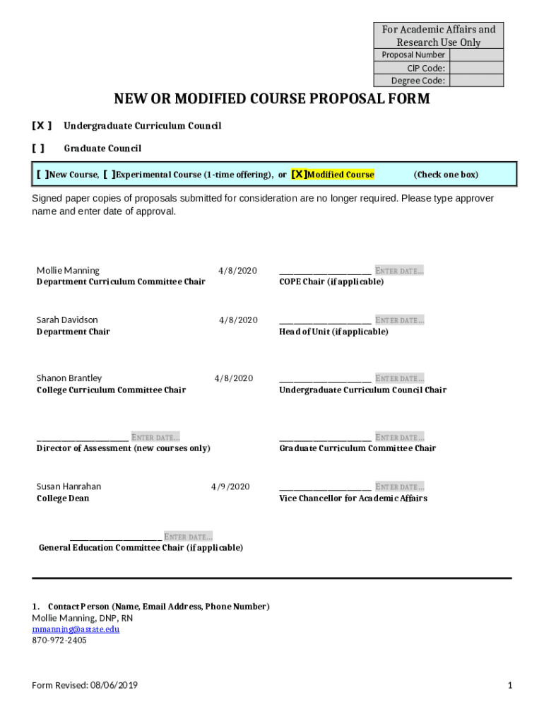 New or modified course forms are essential documents in educational institutions designed to propose new courses or update existing ones. These forms capture critical information including course content, objectives, learning outcomes, and prerequisites, which are pivotal for curriculum management and effective academic planning. Their purpose lies in ensuring that course offerings align with institutional goals and meet the needs of students. The importance of these forms in educational administration cannot be overstated; they provide a structured way for educators and administrators to collaborate in shaping the academic landscape.