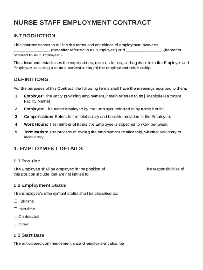 Understanding the roles and responsibilities defined within the nurse staff contract is crucial for both parties to thrive. This section clarifies what is expected from the employer and the employee, particularly in areas like compensation and termination processes.