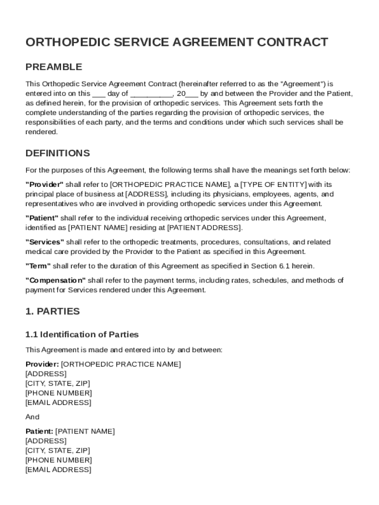 Key sections of the Ortho Contract Template provide clarity and structure to the agreement: