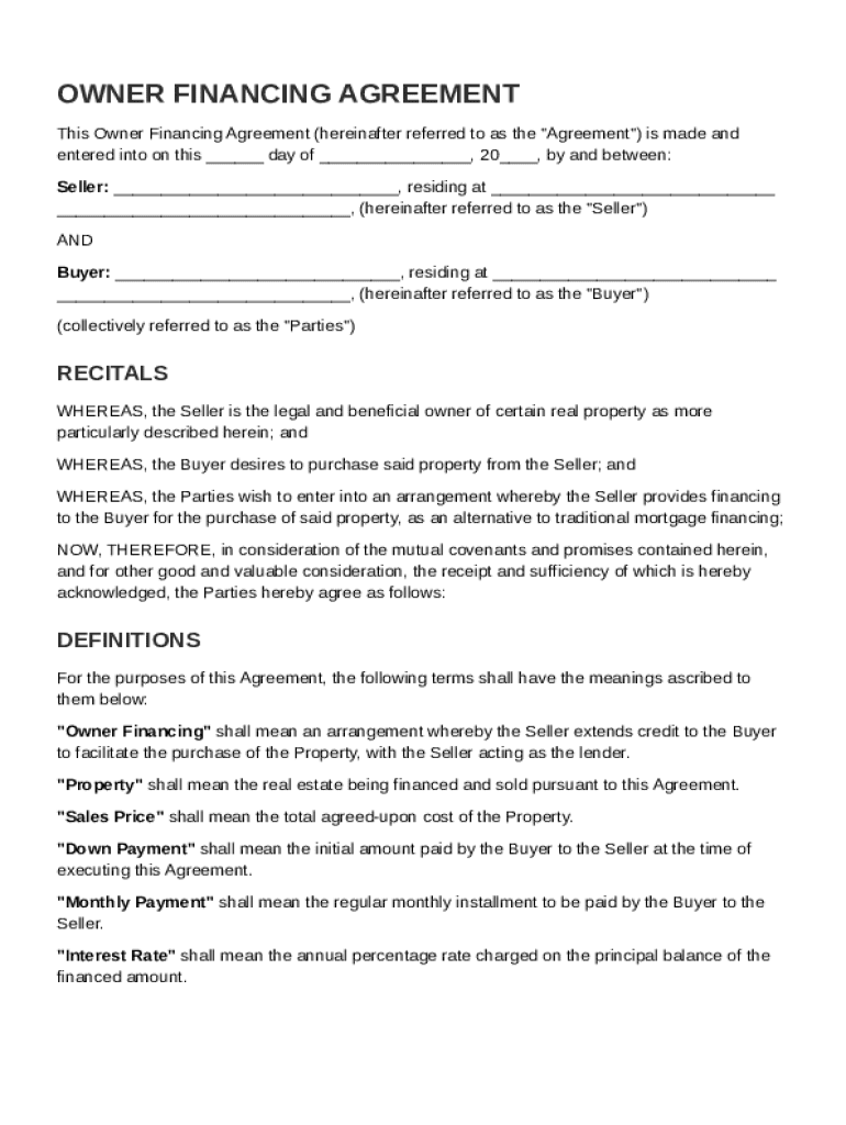 A well-drafted owner financing agreement comprises several key components to ensure clarity and legal compliance. These elements define the sale terms, protect both parties' interests, and provide a clear understanding of obligations.