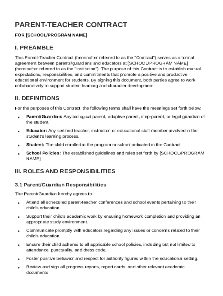 Comprehensive Guide to the Parent Teacher Contract Template Form