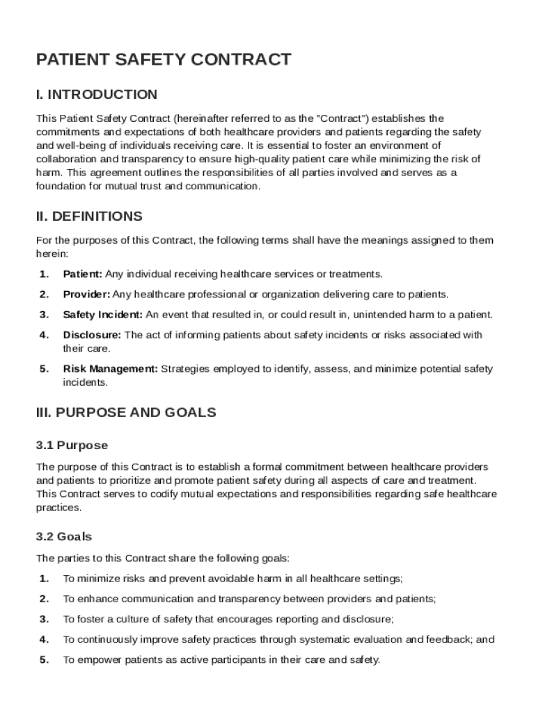 A Patient Safety Contract is a critical document in healthcare that establishes mutual understanding and commitment between patients and healthcare providers. It plays a vital role in creating an environment where safety is prioritized, outlining responsibilities and expectations to ensure high-quality patient care.