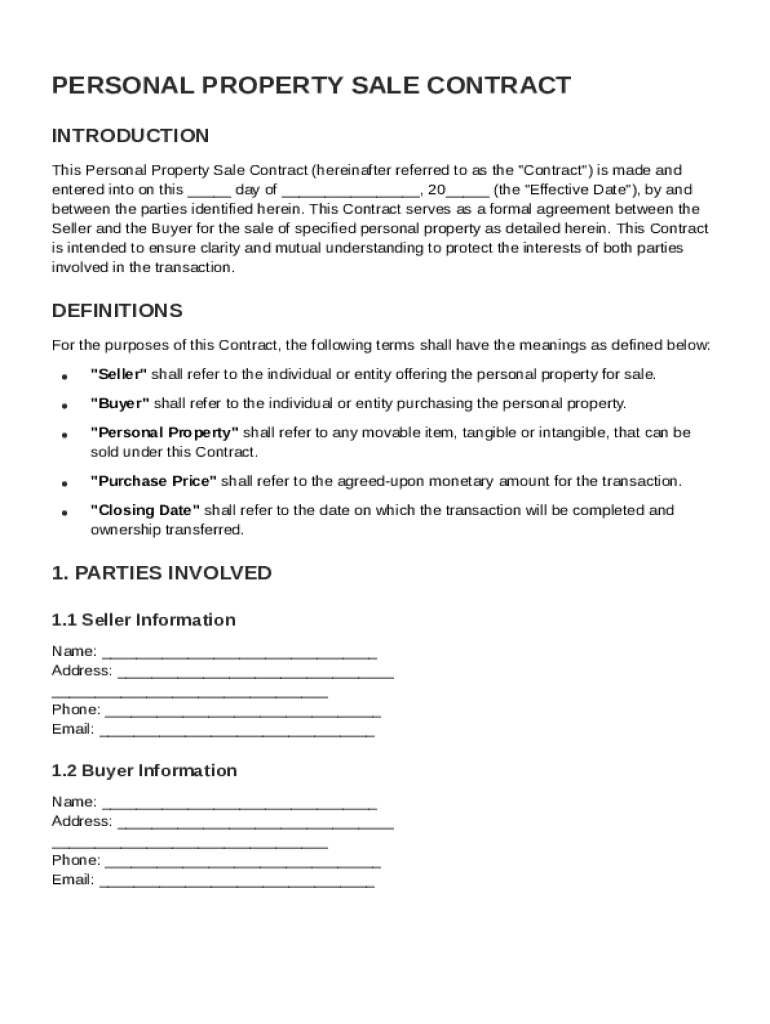 From introduction to payment schedules, it's crucial to know the key sections that comprise a robust personal property sale contract.