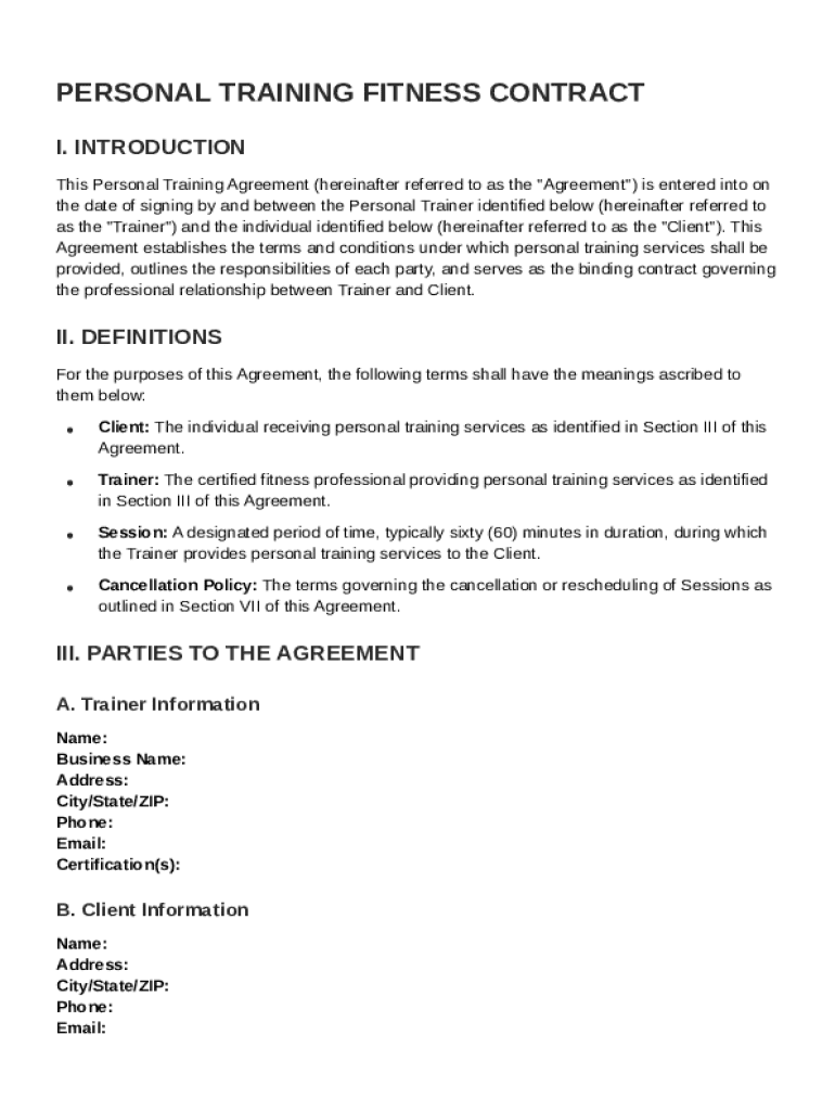 Personal Training Fitness Contract Template Guide